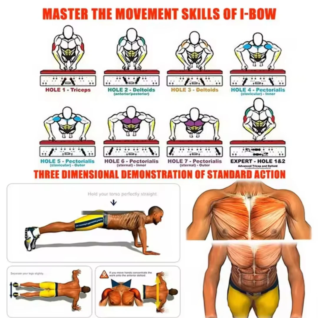 • Renforcement musculaire ciblé : En utilisant cette planche, vous engagez davantage vos pectoraux, triceps, épaules et muscles stabilisateurs, ce qui permet un entraînement plus complet et plus efficace.